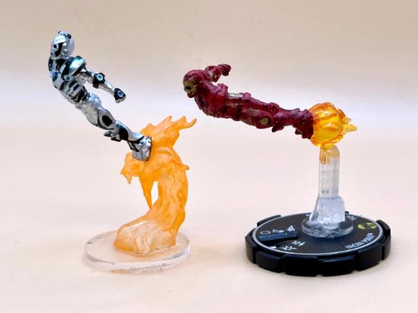 Comparison shot of Kitbashed "Flyberman" and original Heroclix Iron Man model: