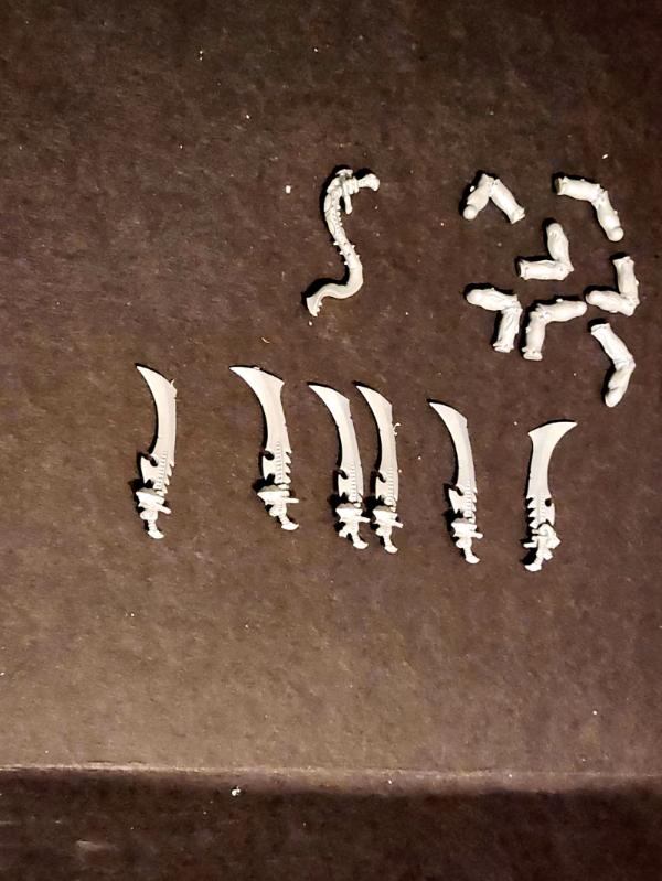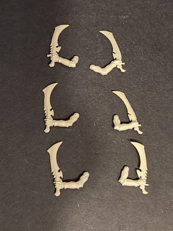 Unassembled finecast models, proof that GW hates us. I don't like the way the tip of these whips look. If I ever use them I'll probably cut the tip off, or add some spikes, or something. The hands closely match the sword hands, as they are intended to be used together, so converting a whip into a left hand sword is straightforward. Automatically Appended Next Post: