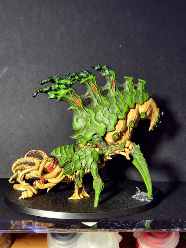 That is the Zoanthrope project completed. It was defiantly a lot of work. I'm overall pleased with how they came. I'm glad to be done painting brain bugs. I don't expect to need to do another one anytime soon, not unless I find one hiding in a corner. Automatically Appended Next Post: While I was working on the Zoanthropes I found a bit of time to clean up a Hive Tyrant.
