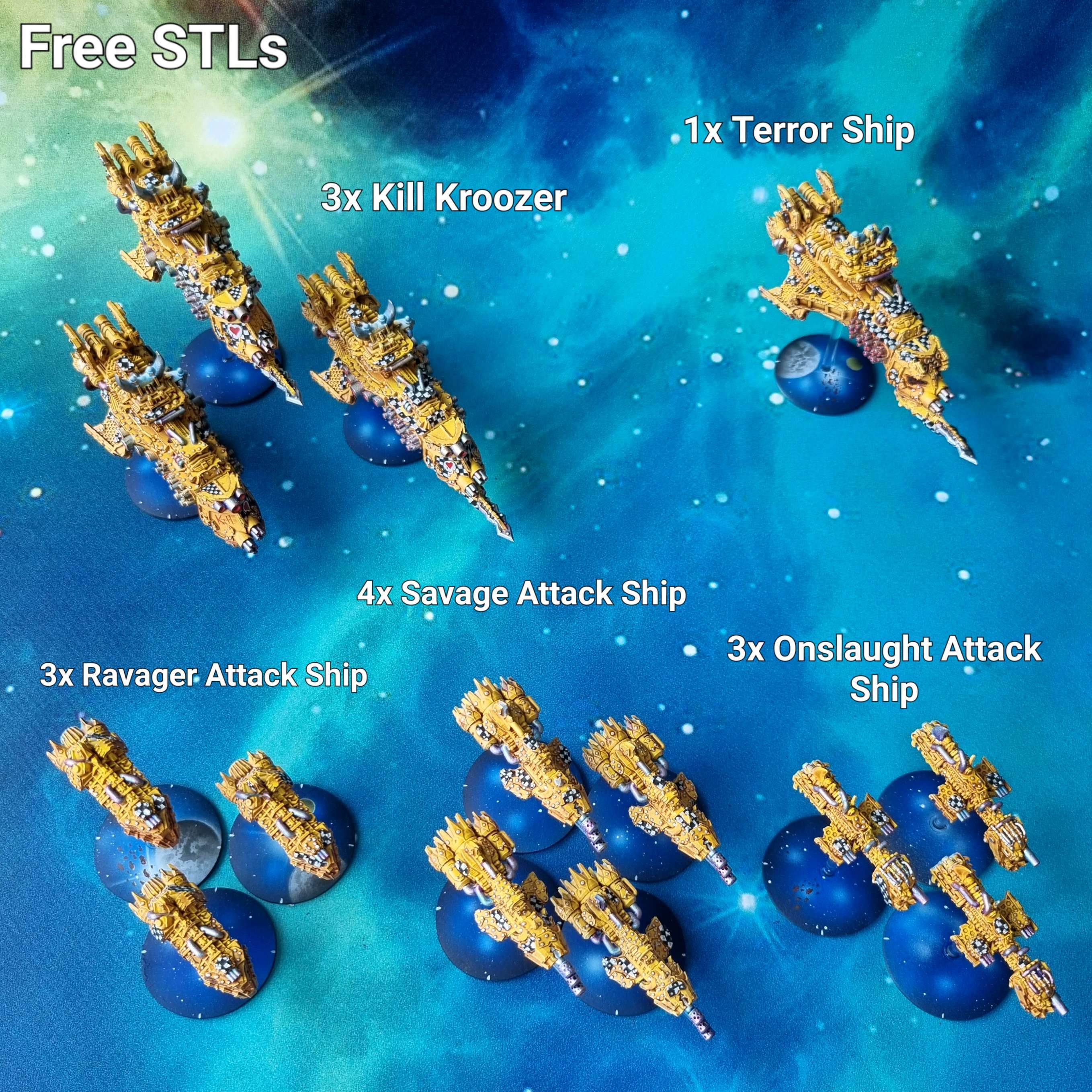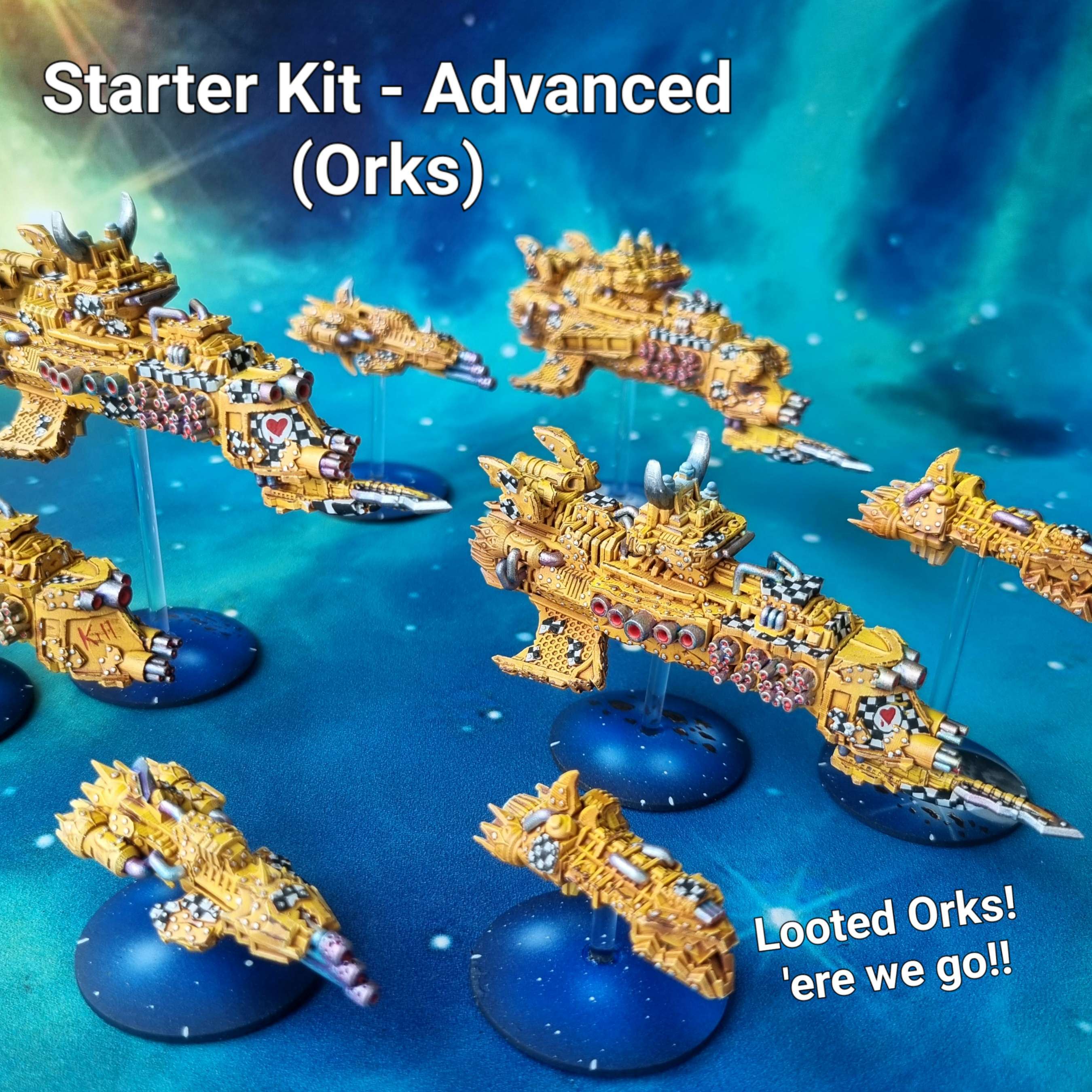 If I can offer one bit of constructive criticism, though: I think the prows on the capital ships look too Imperial. It might help the Orky look if the prows were swapped for a snarling face, or had a jutting lower jaw with teef sticking up around the prow, or similar.