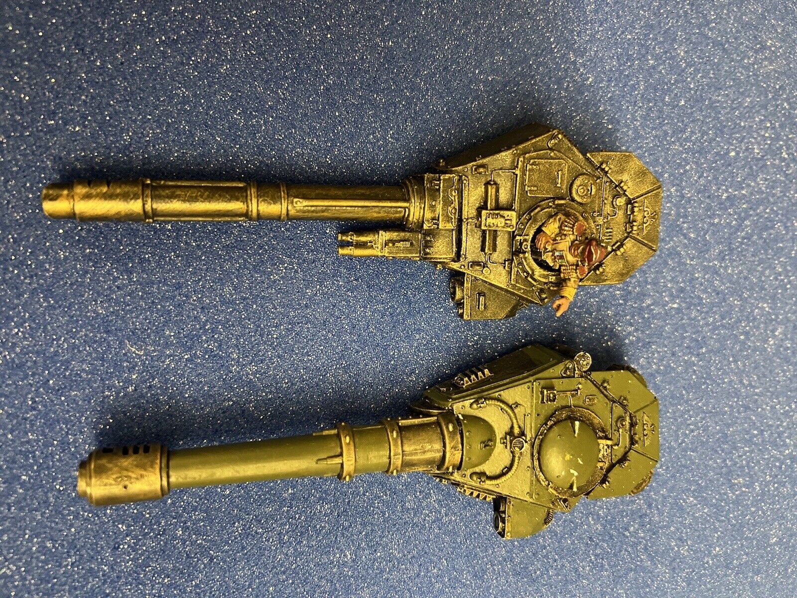 Looks like the old Forgeworld Ryza turret with the nose cut down to accomodate the larger barrel. It has the domed cupola and the curvy wiring doodad on the front glacis.