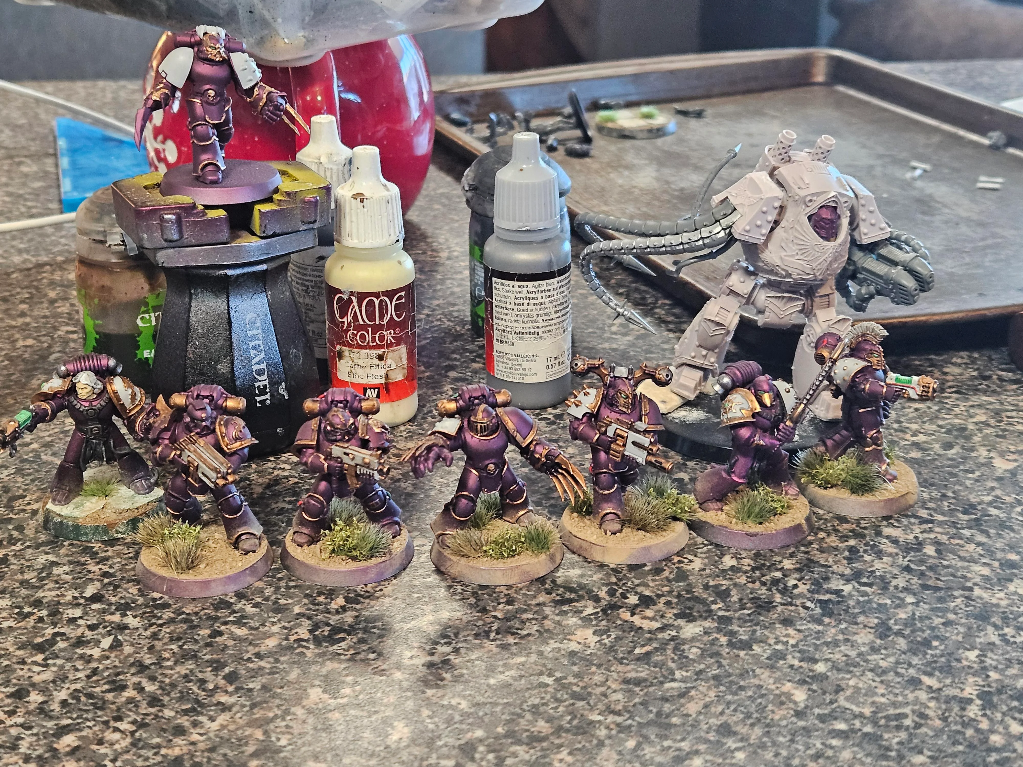 Hello, I've been working on Emperor's Children on and off for a few years now. Here are a few of my more complete models. I will post more in the future. Most of the army is a kitbash in some degree and I'd say atleast 3/4ths of the army has had some form of green stuff.