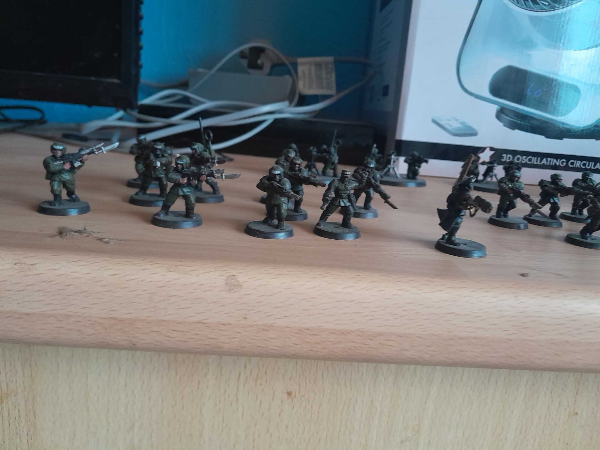 Getting back into collecting for my Guard army, this is the bunch I finished a couple of years ago! Just dubbing them Maverick Company at present, got some Fallout future-United States and Vietnam war movie influences in their conception and build. Have recently nearly tripled the size of the army, just need to put the rest together.