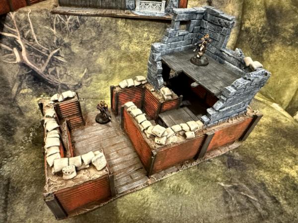Here's the overall board layout (modular, but I like this one as it is tall pieces on either side and smaller pieces as no man's land in the middle).