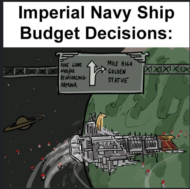 This. Every single time I played the Imperium in Battle Fleet Gothic, I got the old "Where's the giant gold statue?," from people who didnt really play, but knew enough, to be annoying.