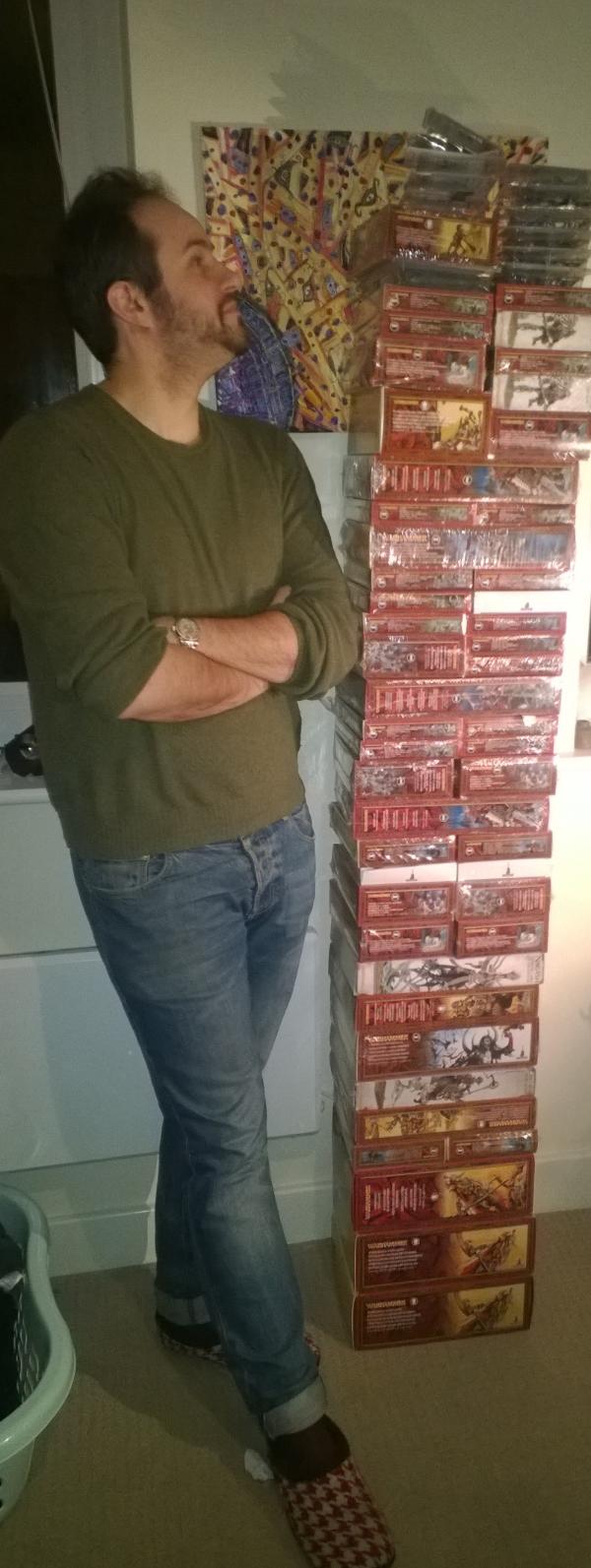 On the unbuilt stuff, I've been collecting miniatures since 1996 and unlike a lot of other people I never took "time off" and sold off my stuff, so I still have almost all of the stuff I bought over that time, and most of it is painted. I was doing alright til GW came out with Start Collecting boxes when I was going through a bad patch in life. I used to buy one every now and then to cheer myself up, and once you have the start collecting you MAY AS WELL get a few extra units to make it a little force...and then maybe a bigger force. And then it all sat in boxes for quite a long while.