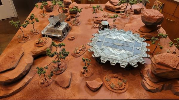 the biggest piece of terrain I own is the landing pad they released a decade or so ago. It's actually a kind of awkward piece because of its size and LOS characteristics. But it's also generic enough that is can decorate any sort of "outpost" type of table setup, so that's nice.
