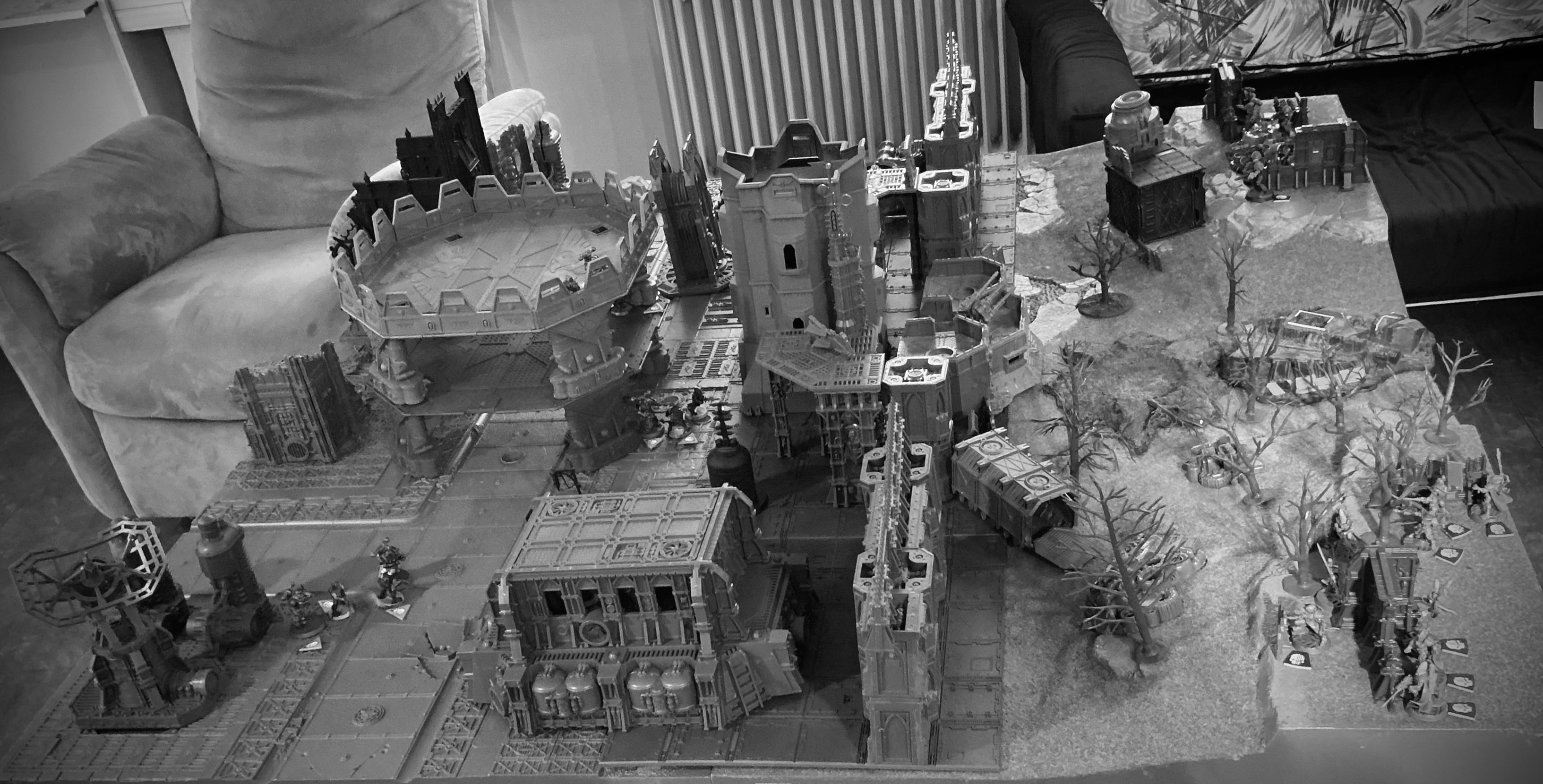 -Half a table of GW-style half-ruins. I'm actually planning to finish up a whole table's worth and I've probably got enough kits and parts to do so. I'm told it's very much overdone in current play, but the ruined gothic city is a grimdark classic and I'd like to have access to that from time to time. Plus, I wouldn't always be setting it up in annoyingly mirrored setups.