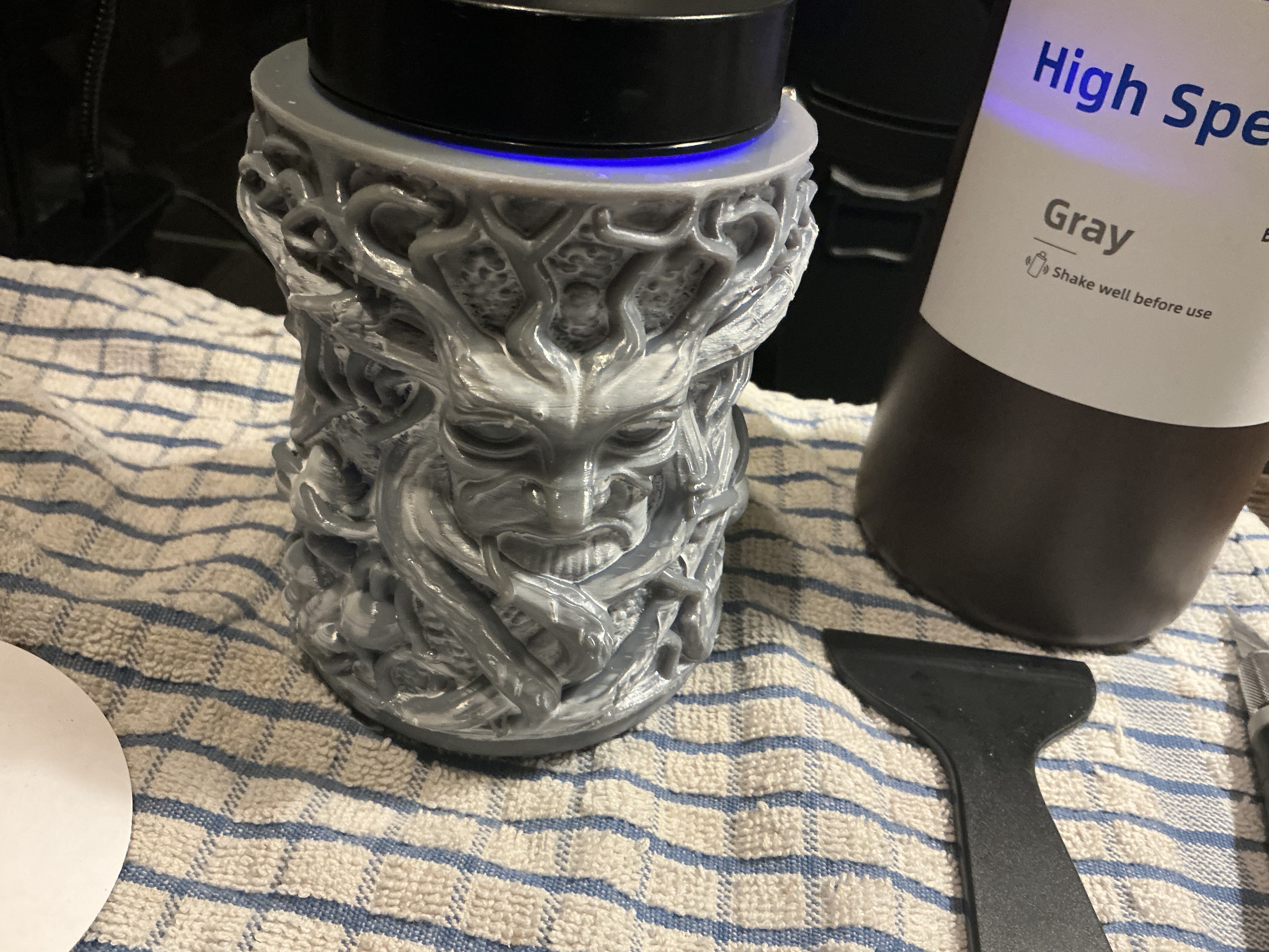 But then? Buggizzle. Lid did not print right. Will try again tomorrow, flipping it 180 degrees. That way, if the print does go wonky? It’s the underside, and once cleaned and cured I can cover up any embarrassments with a felt lining.