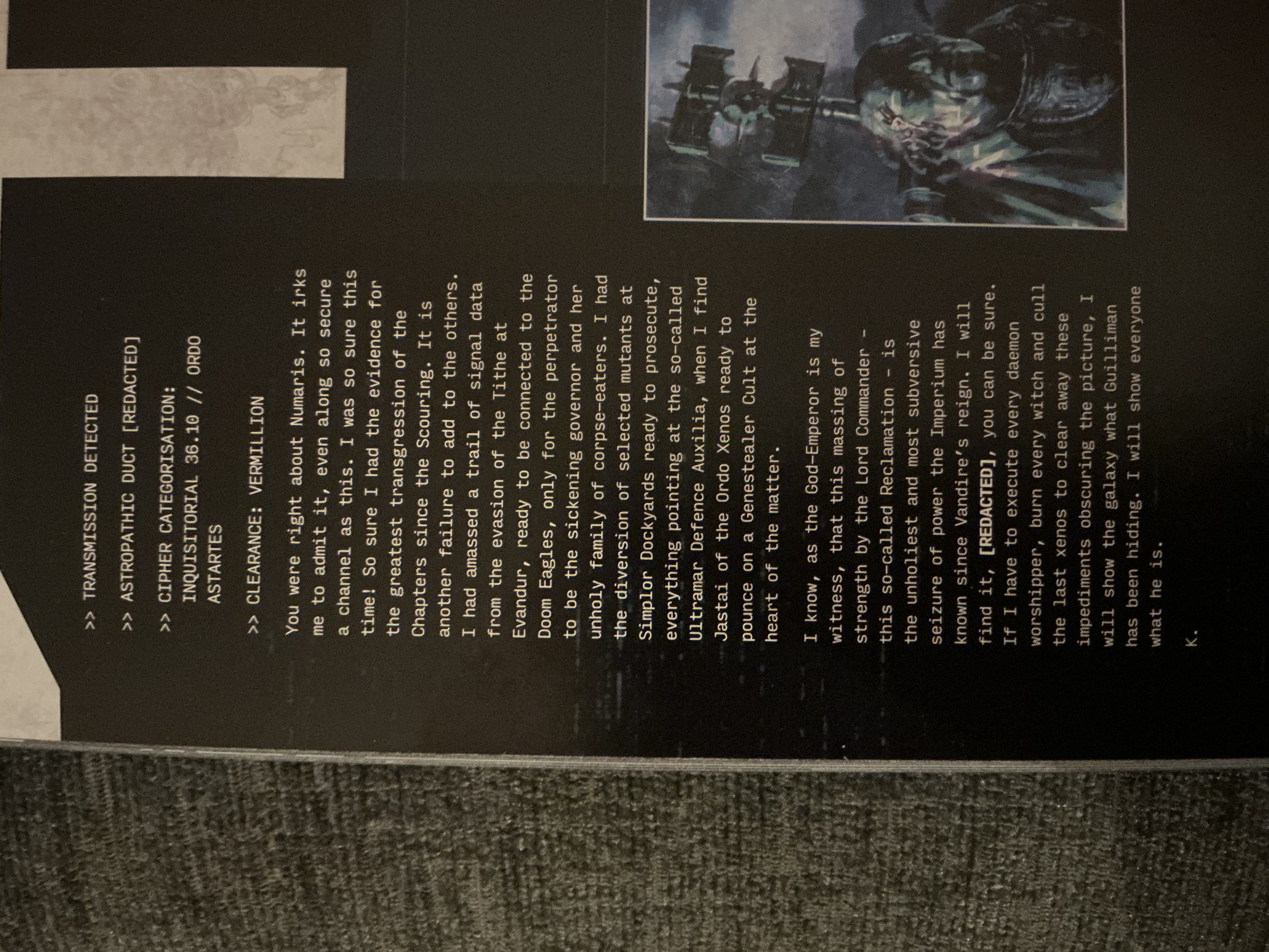 The reclamation of the 500 Worlds of Ultramar is presented as a long term endeavour. This book at least does not chart the beginning, middle and end. Indeed, I’d argue it’s only setting a larger stage. Which I kinda like, and I hope the other *however many books* in the End of Edition Narrative follow suit, and likewise set up some theatres of war for us to play in come 11th. And if I’m being really hopeful? Feels like there’s the room for a global campaign which might allow us to shape things.