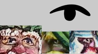 Try to attach the iris to the top eye lid (shadow) and leave white bellow the iris.