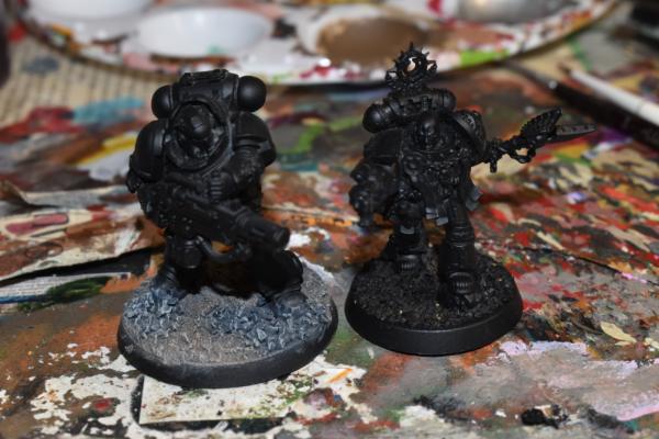 2) The original Space Marine scout, possibly accompanied by his carapace armored friend