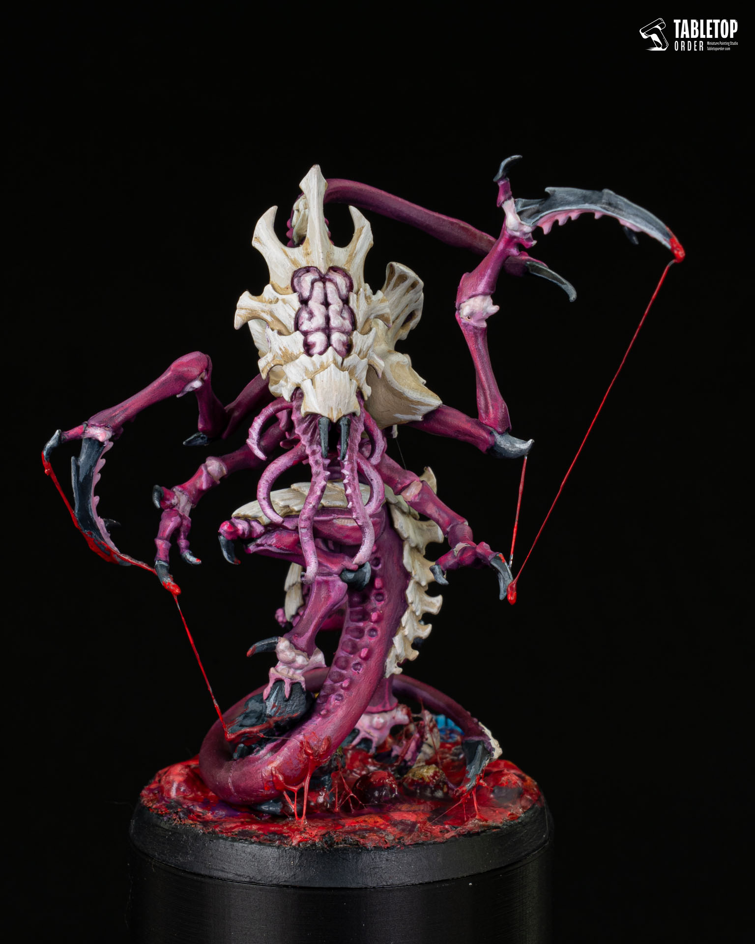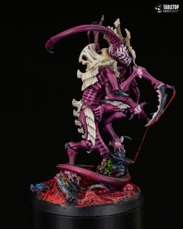 Meet a truly eye-catching centerpiece for your collection-this striking alien creature miniature is designed to stand out from every angle. With its twisted purple body, sharp claws, and detailed bone-like armor, it brings a powerful and intimidating presence to any display or tabletop game. Every part of the figure is packed with texture and character, from the tentacle-like details to the dramatic red effects at the base, making it perfect for hobbyists who appreciate bold designs and high-impact visuals.
