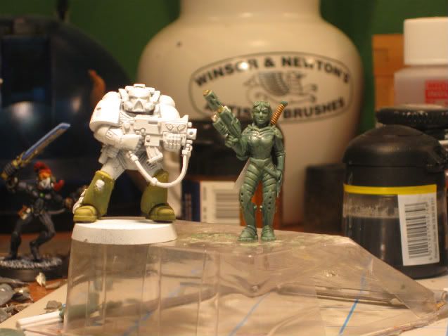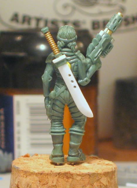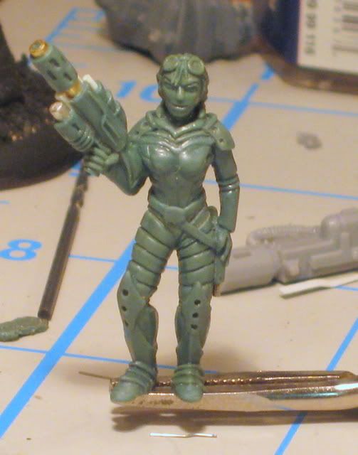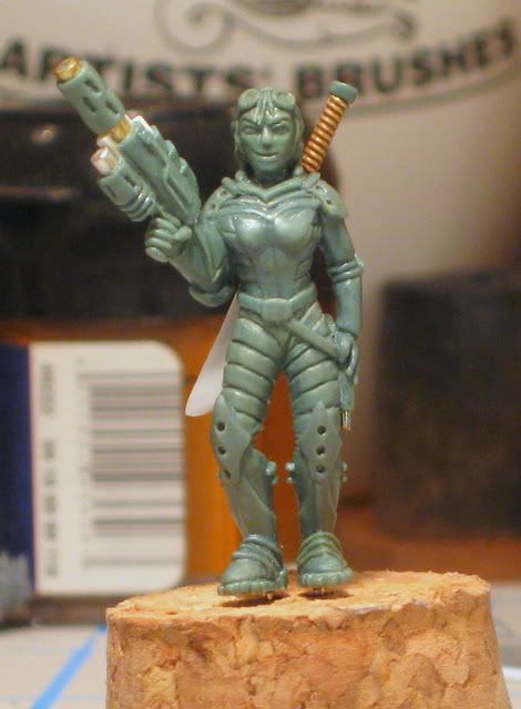 I'm really liking Khavor's female mini with the "melta" gun, but the goggles perched on her head really don't suit - perhaps bare headed would be a better look - the goggles just don't seem to fit the rest of the mini...