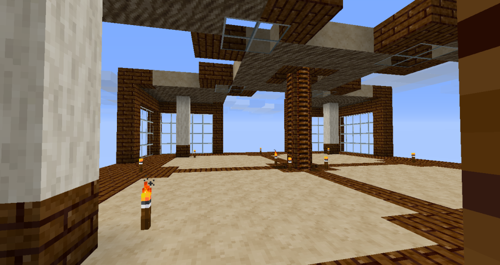 I could remove the wood pillars save for the corners to give it more minimalism.