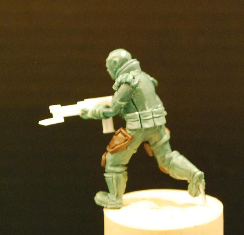 Like the pose and expression on the mercenary... Not enough detail yet on the bots to judge...