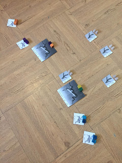 Not much to look at, but I am developing some Korean Air War rules. This was a play test on the floor with my kid....
