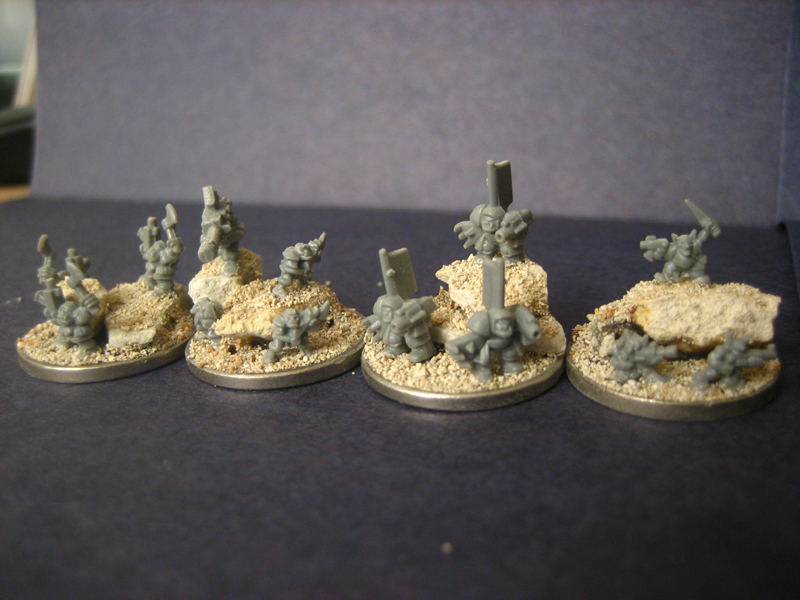Some more orks modeled. Paint started on the first base. I'm going red and yellow for them. Haven't gotten that far just yet though. Need to pick up a few paints. Let me know what you think.