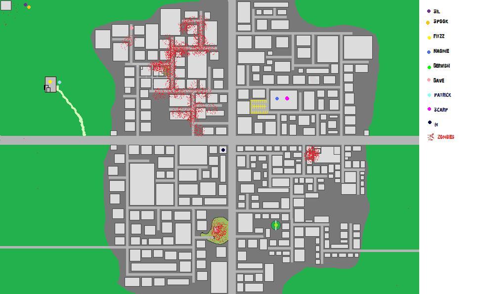 Biker + Patrick will probably meet up with Spook and Sil and we'll just hide in the safehouse methinks. Then the zombs will come