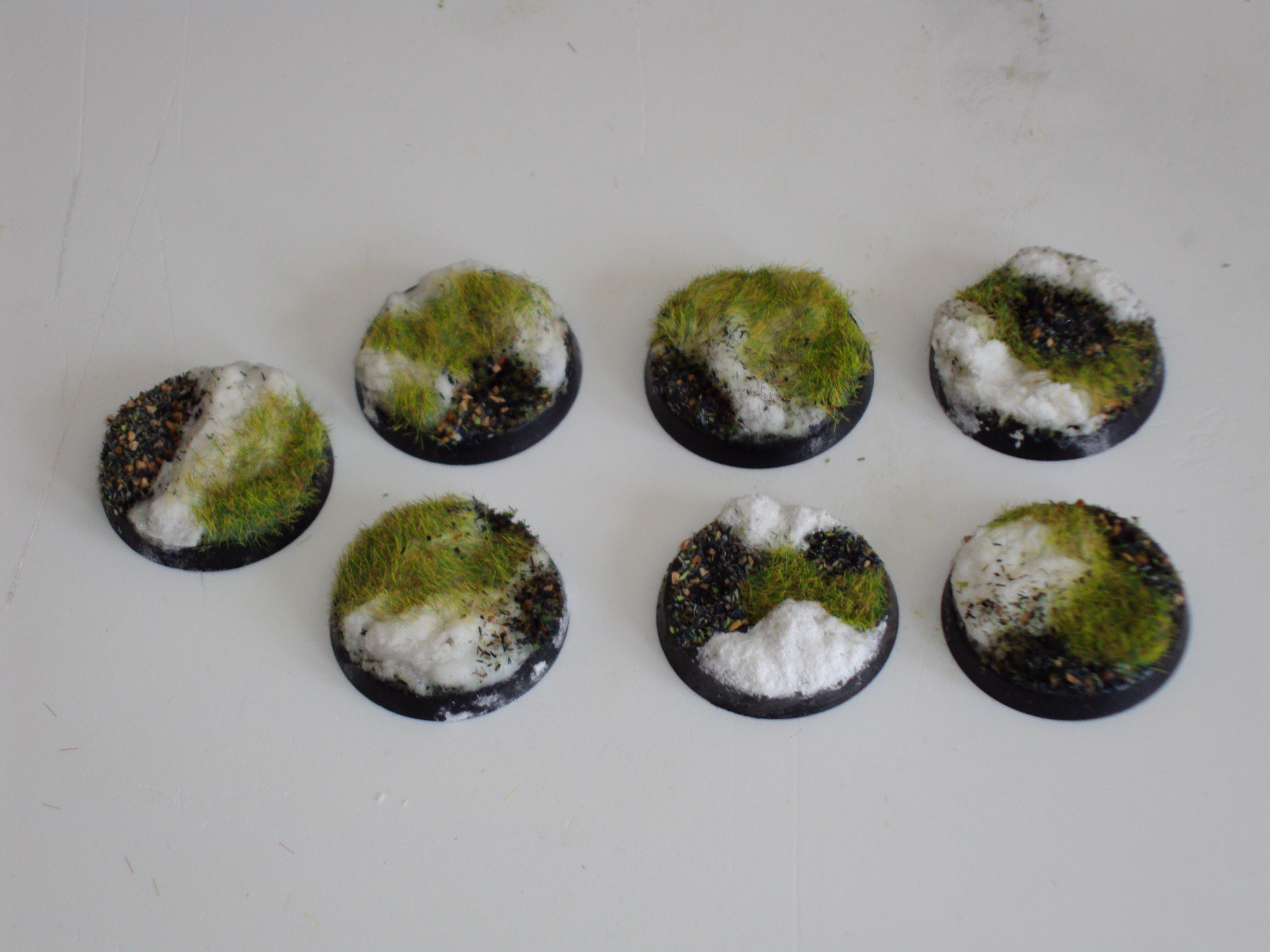 I have gone with a winter-ish style basing to hold to the fluff of the planet defreezing from leaving the warp! So this means the bases has lots of snow grass and dirt etc! Trying to give a snow thawing Spring if you like??