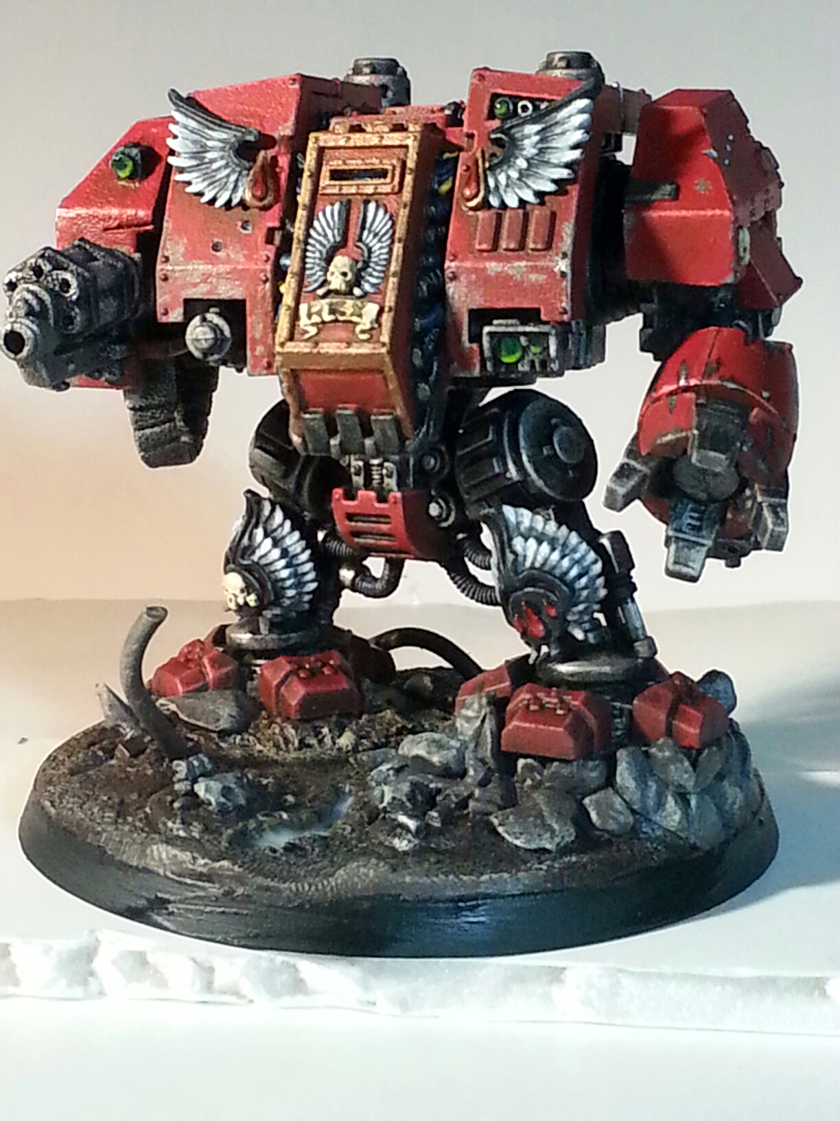 This dreadnought I found in my bits draw. I must have bought it to use the parts for some thing else. I think it was for a scratch built hellbrute. I must have used the shin guards coz that's the only bits that were missing. I needed something on the legs and I don't have many SM bits having only just started. So it was really the BA shoulder pads that would make it look more BA or make some thing out of plastic card.