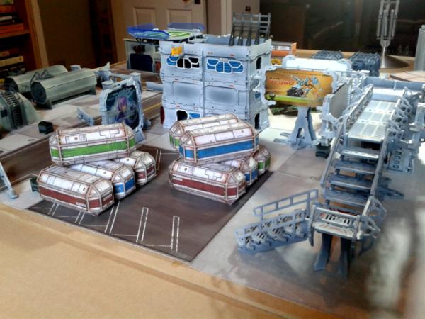 Thanks all, glad you like it  Going to plan some future additions whilst I get back to minis for a bit, but I think the upcoming church and crab crate-mover from Zen Terrain will be featuring, and hopefully the scout tower AW previewed ages ago, as and when they kickstart their KS. Sadly not their anti-grav sports cars which have gone, should have ordered when I had the chance :(