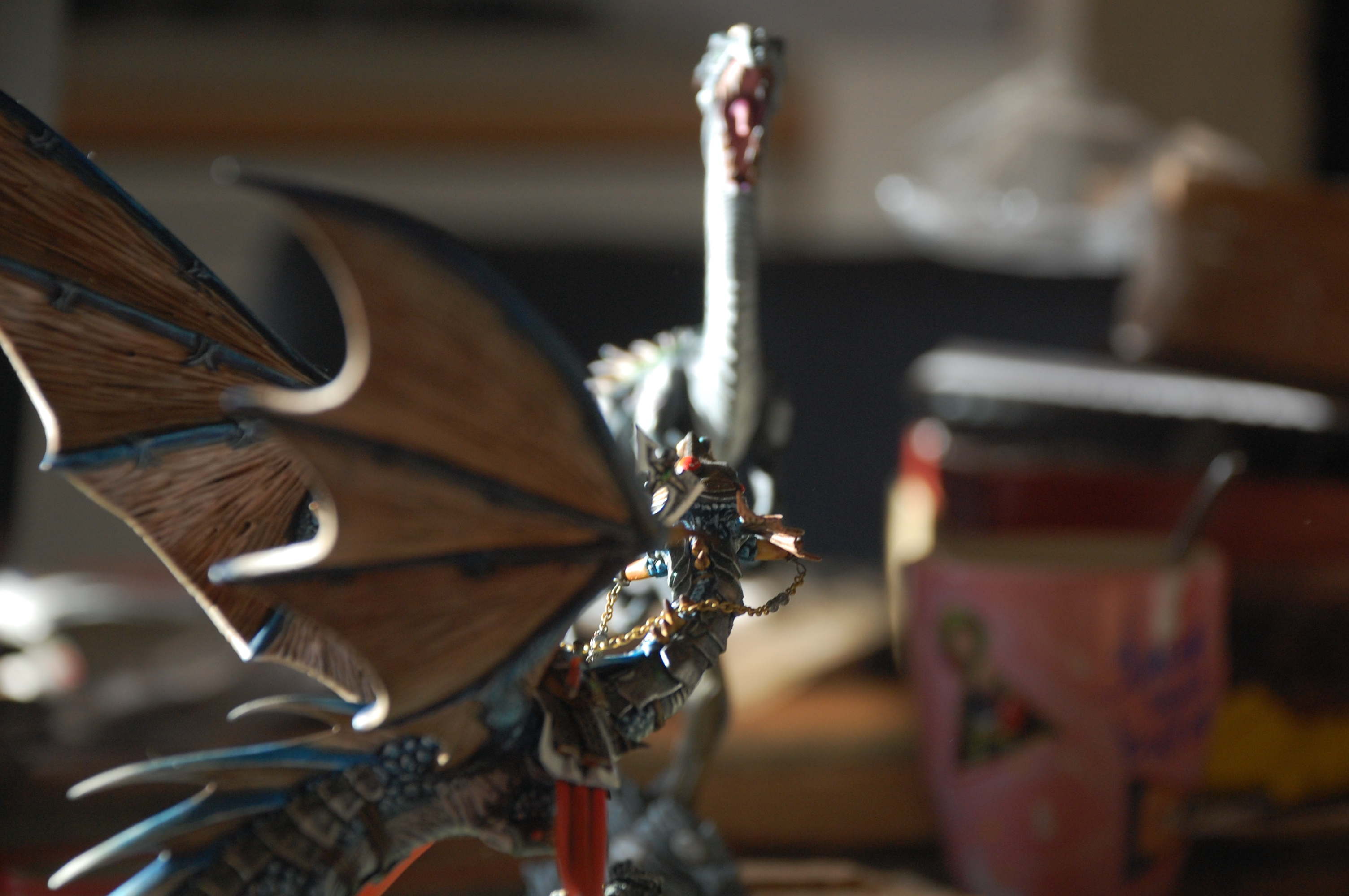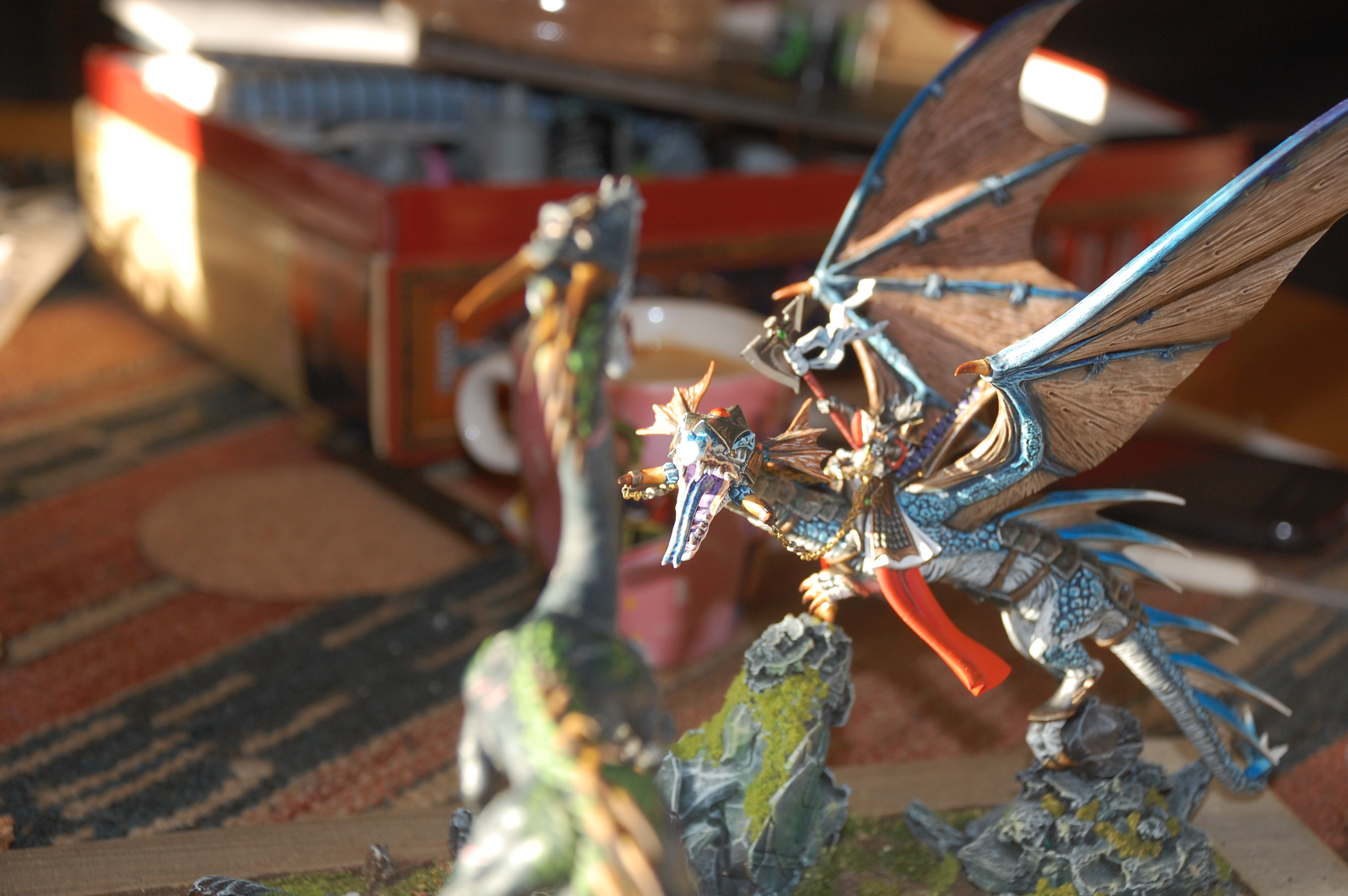 When the last layer has dried(tommorow) i can start working on placing the dragons...glue the blue dragon on his base and glue on the riders head wich means the first of the 2 dragons is completely finished then.
