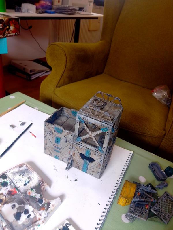 Got a bunch of deadzone terrain painted. I've done them without gluing anything to maintain modularity, and it was annoying to get together as when painted, but I'm happy enough with the outcome! Might do a bit of touching up here and there where the wash dried unevenly is all.