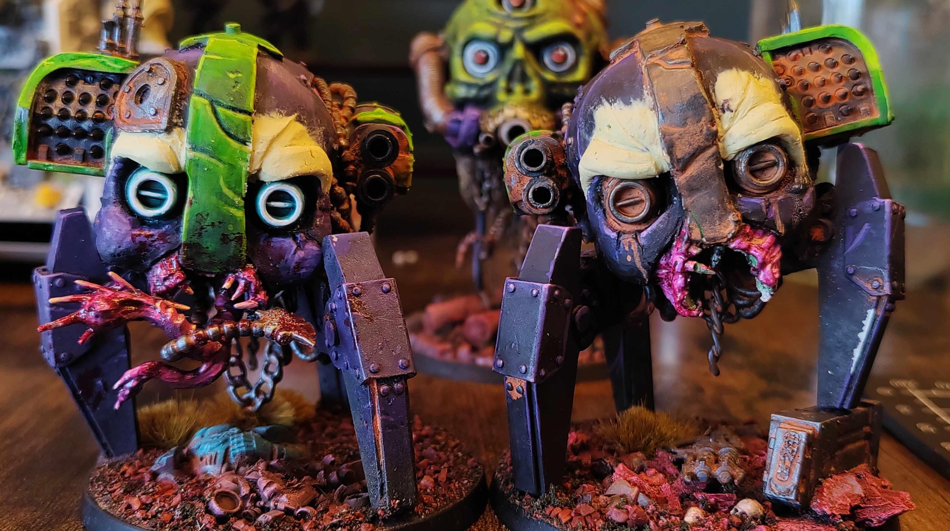 gobert wrote:Man, those proxy Poxies are fantastic, they’ve really embraced the grimy side of Nurgle. I like how their green faces match with your giant floating head vehicles as well  good use of bits for their weapons and trophies