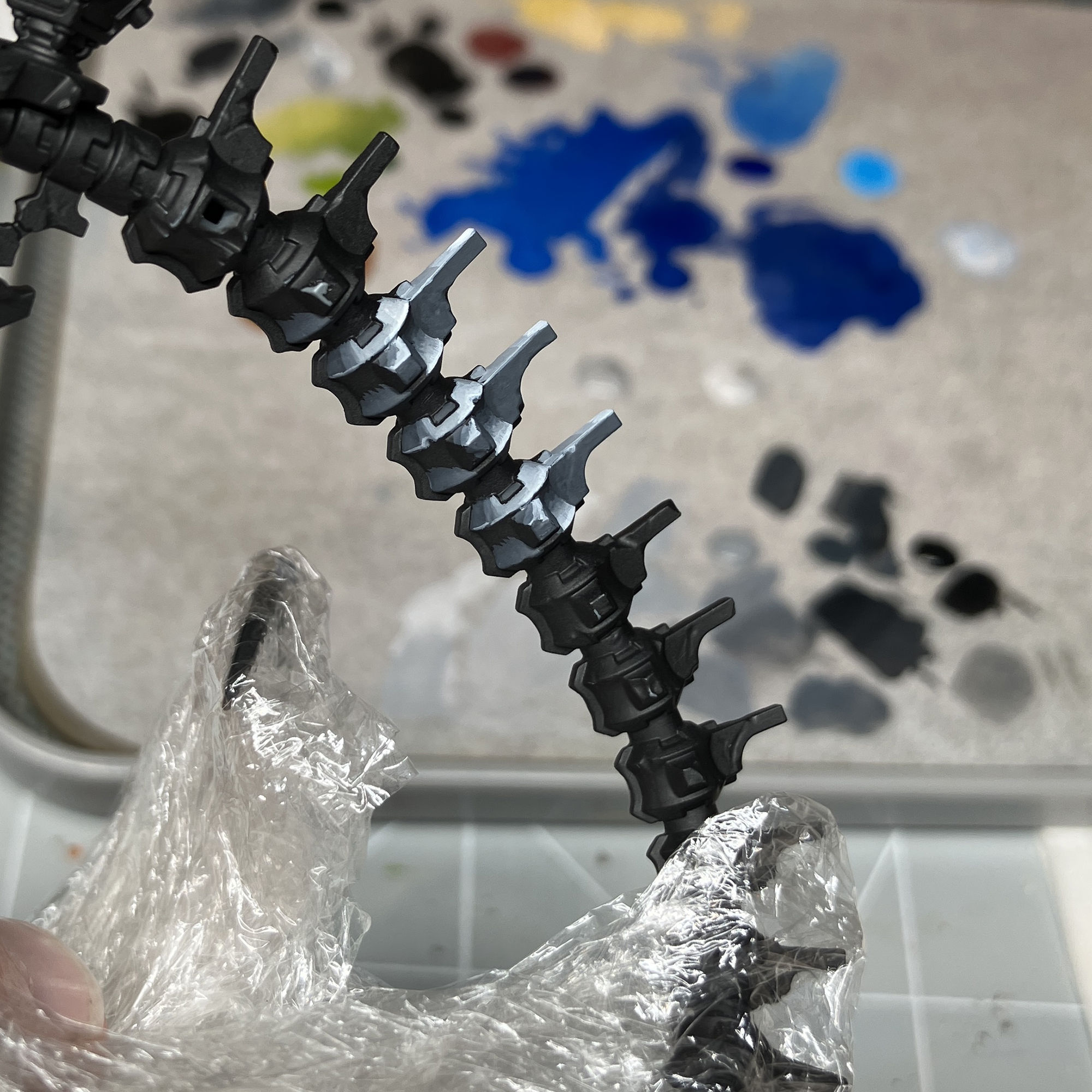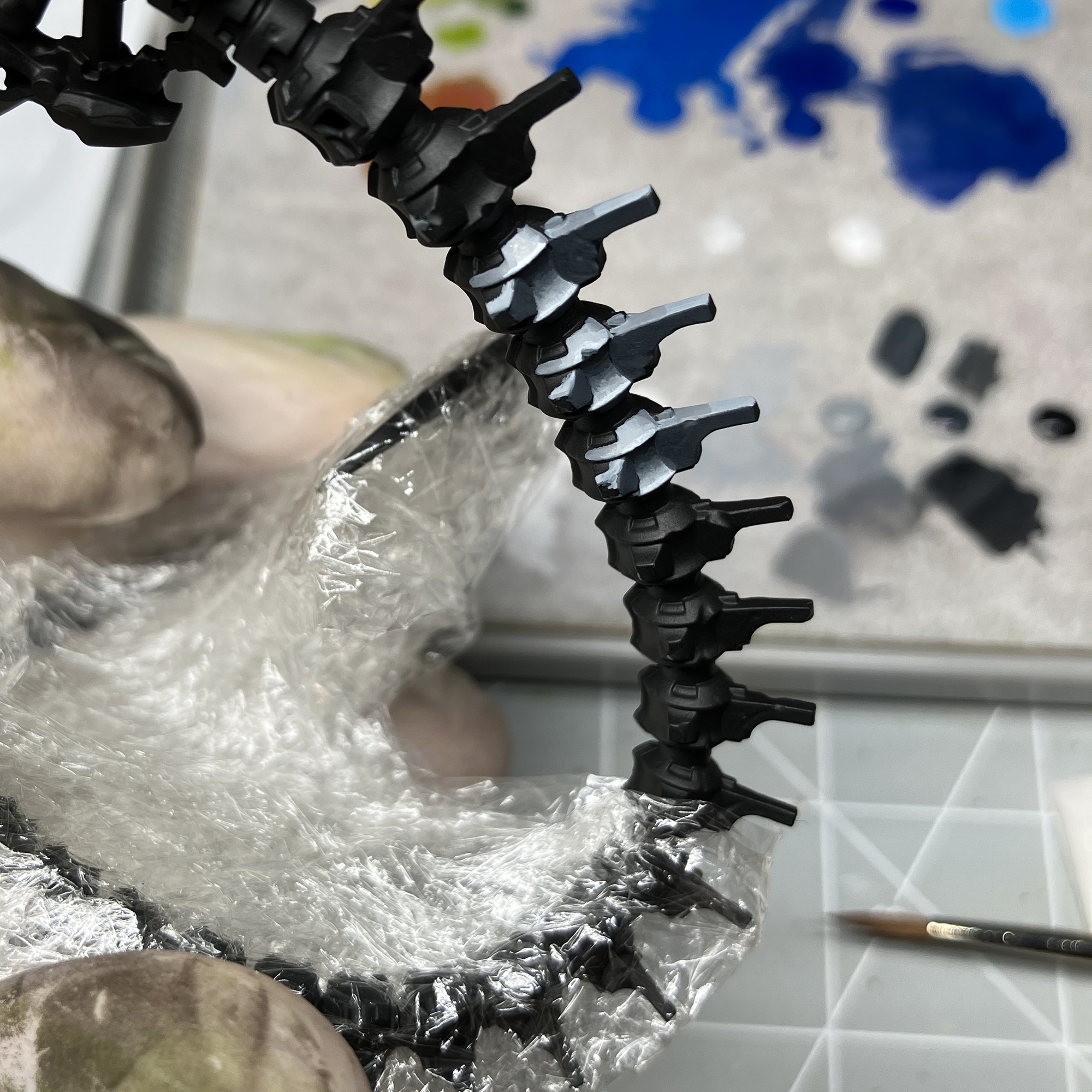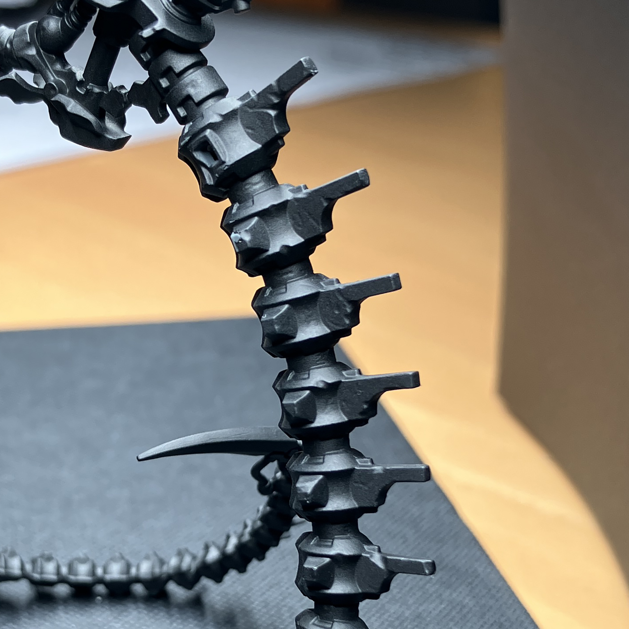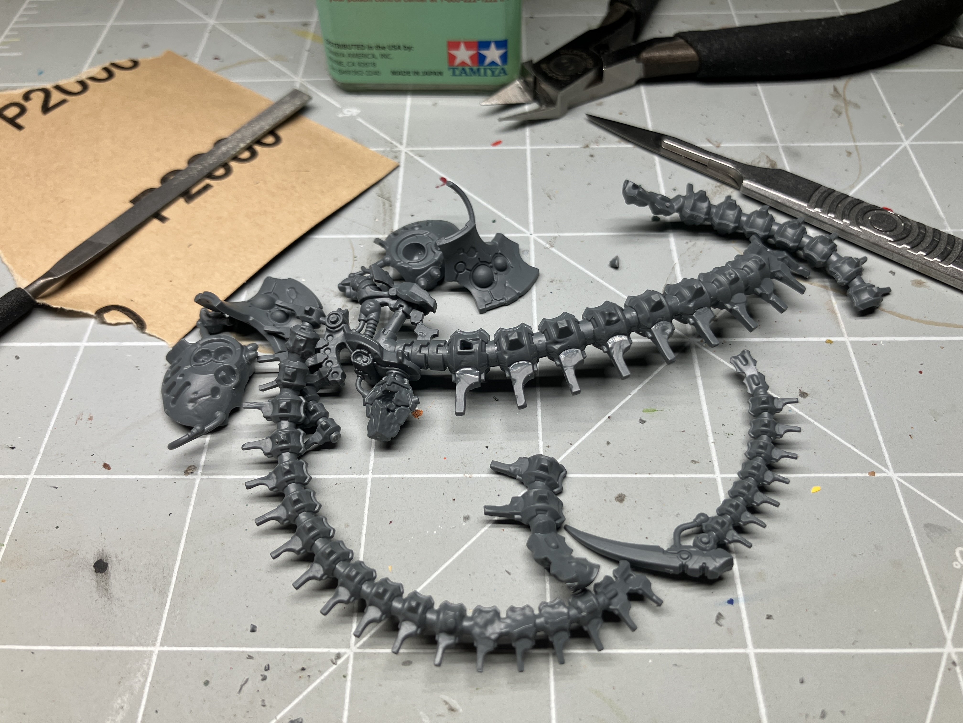 Started assembling him and spent hours removing the super fine mould lines (kit is fantastic and very minor lines) but given the profile of the spine and all his thin hoses connecting weapons to the body it is a very slow process. Currently adding sprue goo to mask up assembly gaps, but soon ready to prime the main spine.