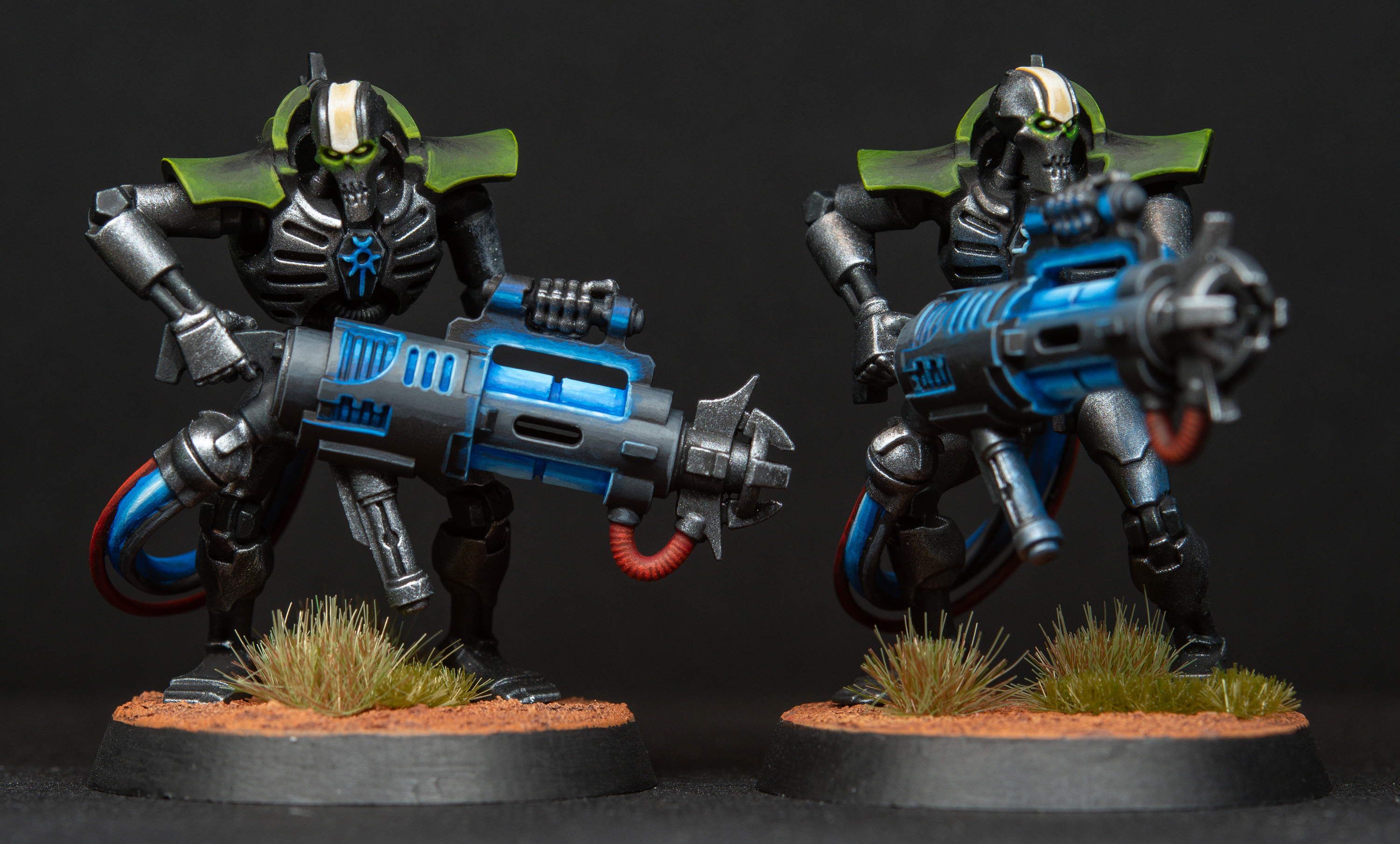 Thanks JordySteve, the right hand guy is an Overlord with Translocation Shroud. I thought it was going to be a nightmare to paint him but the kit is incredibly well constructed meaning it is easy to paint in subassemblies for good reach. He also turns out to be an amazing asset on the table, especially when paired with the Chronomancer.