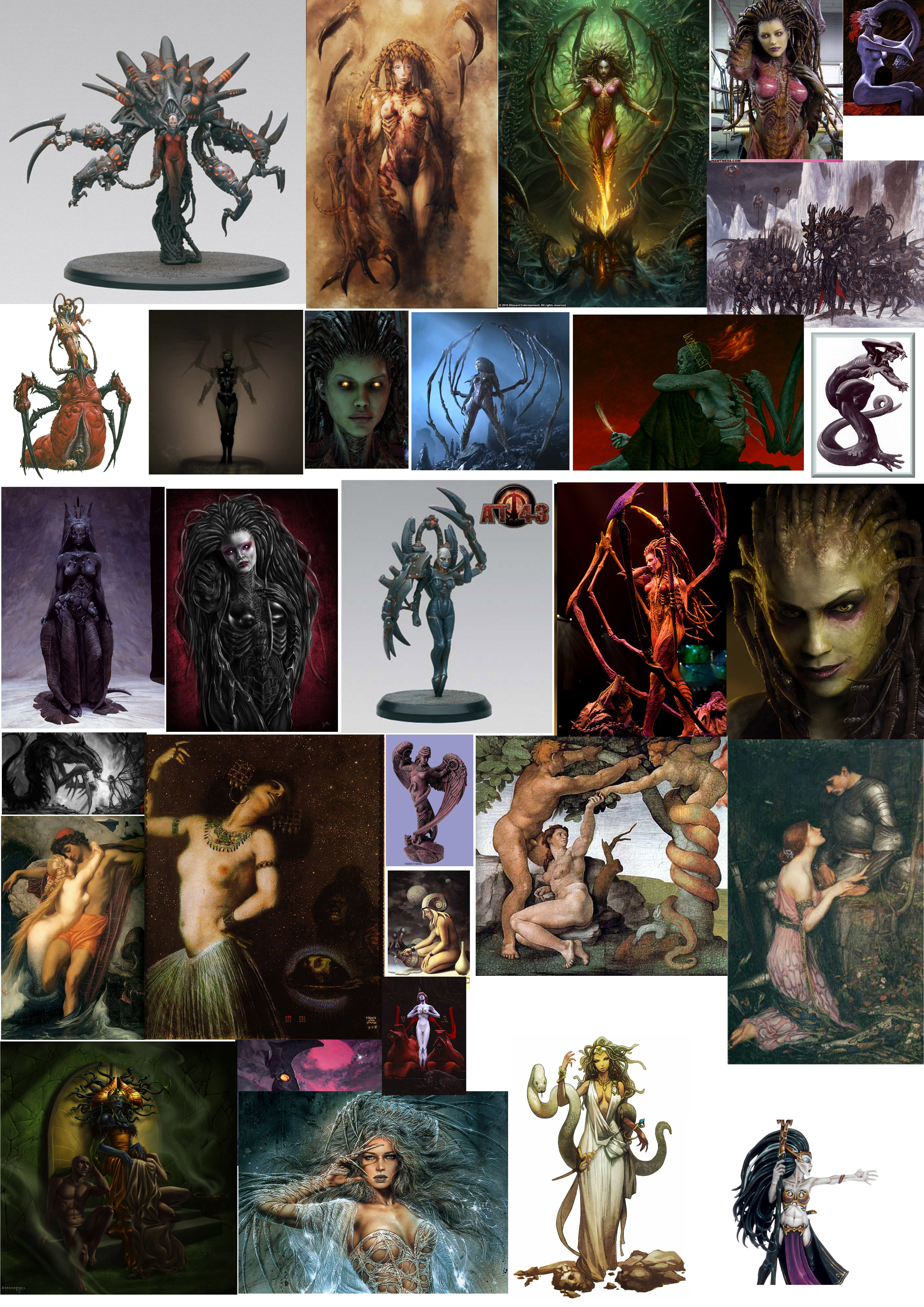 Sooo, being having a play today with some ideas for the liliith coven , made up some nice inspirational reference sheets for myself , and then did some blue tacking