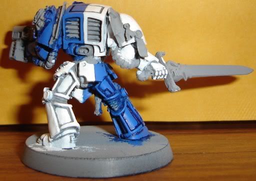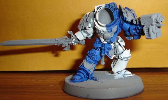 I present to you Chapter Master Acies, WIP. Angle 1- Front w/ Sword Angle 2 - Side w/ Storm Bolter Angle 3 - Back  and my updated Chaplain: Old School Plasma Pistol Chaplain Body Chaplain's Bling - Real Bling: 6 or 10 Karats  Enjoy SoG Enjoy Khrangar