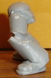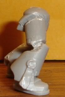 I did a bit more work on the MkI Chaplain's legs today, just now actually. Here are the pre-GS results.     I went for a more updated version of MkI armour, if that's possible, but basically it'll be a modified version of MkVI armour. I now need to greenstuff the chainmail into the carved out sections where the joins are on the armour. I also plan to greenstuff the indents on the armour so that it looks smoother. The reason I didn't carve out the joints by the groin is because the chainmail tabard he has will cover it and there's no real reason to do so if you can't see it. I need to add some pouches or something to the right side of the model as the chainmail tabard is a little off centre and I think something there will help make it look better. As rules go, I figure I'll use it as Artificer Armour as you can't get much older/more of an artifact than MkI and make him a Master of Sanctity with some Master Crafted weapons, ie. plasma pistol. What do you think so far? SoG