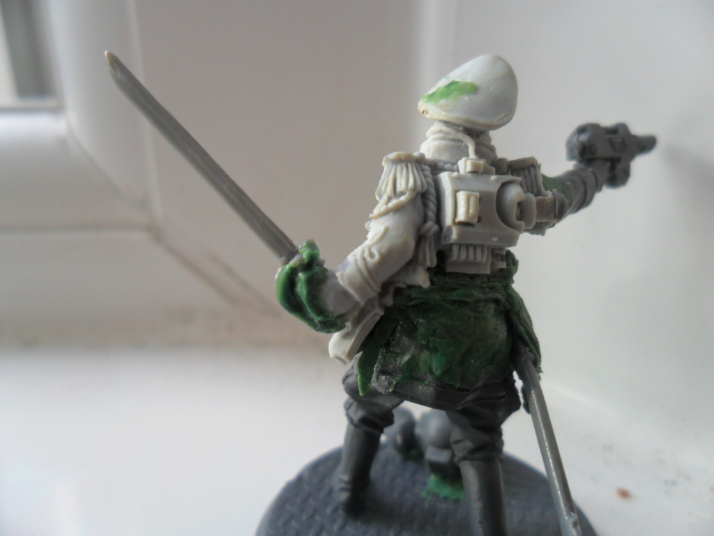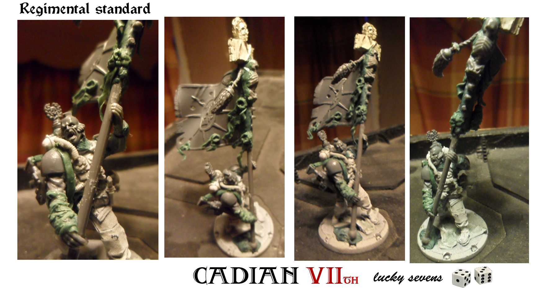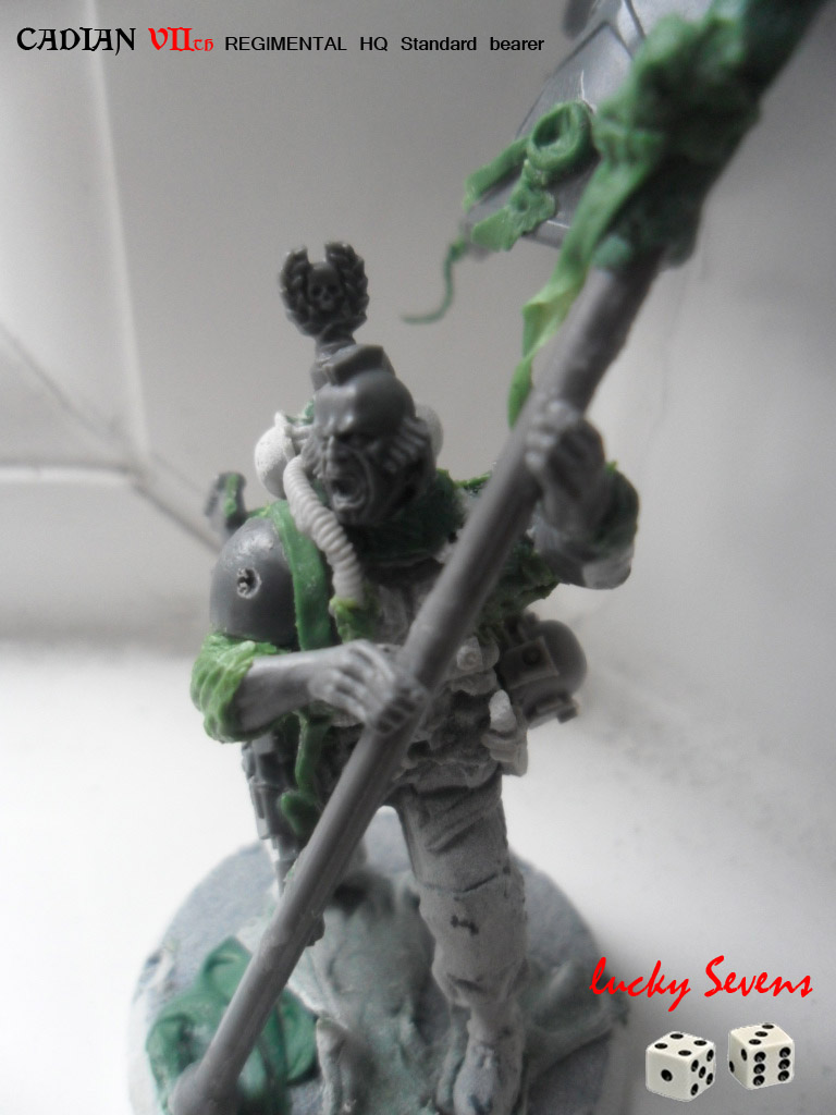 still some tidying up to do , but i think its a better pose now, especially given the importance of the regimental colours in the caddian 7th fluff