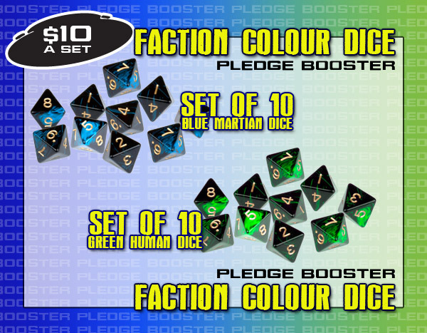 Update #62 Car Carnage As we go in to these exciting last 48 hours we’ve continued to improve our front page with a simple new guide that shows you how to pick your pledge - this should help the backers who have been with us all the way pick exactly what they want, and the new backers see what a great deal it is and jump aboard. We have also got a few cool pledge boosters from our suppliers to let you add a few exciting custom bits to make you games totally unique. We hope this simple process will help you get you exactly the pledge you want - be it a 1-click bargain or a custom-made package! New Mini-Stretches We’ve put in a couple of mini-stretch goals to keep building the momentum. The first of which is the Science Division Unit Commander - we'll upgrade one of the Science Division infantry to this cool new leader figure at $472,500! At $475,000, we will lock-in the Co- op and Solo rules and the A.I. Deck. After that, as a mini-stretch we’ll upgrade one of the figures in the Novas Vira infantry to have a new Gatling Gun heavy weapon, reverse engineered from Martian Technology at $477,500. Here’s the first look at this new weapon: Pretty cool huh? New sets from Antenociti We’ve worked with our friends at Antenocitis Workshop to bring you even more scenery for your gaming table – we work with our partners and ask them to create a few special pieces. Check out these crashed car sets! These are bought from these suppliers because we think you would like them - but there is no stretch goal - so they have to be Pledge Boosters. Although we would love to let you this means that they can’t be included in your credit, but you can add them on to any 1-click pledge, or just add-on as normal. To finish off the pledge boosters before the weekend - and to show off some nice and shineys as we finish - we’ve also got our last Pledge Booster sets you – some fancy dice in Martian and Human colours! So, we come in peace! The front page renovations should make it easier to add new backers as we head into the final weekend, and we hope the pledges offer great value to allow you to pick a 1-click or build your own. Thank you so much for supporting us this is going to be a great game - made so much better by the support we have gotten. It is going to be exciting on this last leg of the journey and let's see where we get to on Sunday night! A good update, but I imagine it's still so annoying that you can't pick up the Antenocitis Workshop terrain stuff with the pledge credits (I understand why, but it's just the sort of thing people would want to use the credit for)