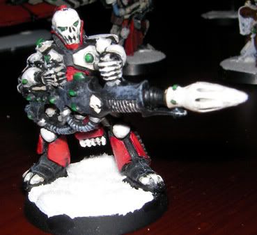 ... now a comment/criticism: the pics seem to make your white look pretty thick / not real uniform in color. I don't know if this is because of a) the pics b) that the white is actually a marbled color with gray or c) your white needs a little thining or something. I have a load of trouble with painting large patches of white on my Chaos marines, so I feel you there if it's c).