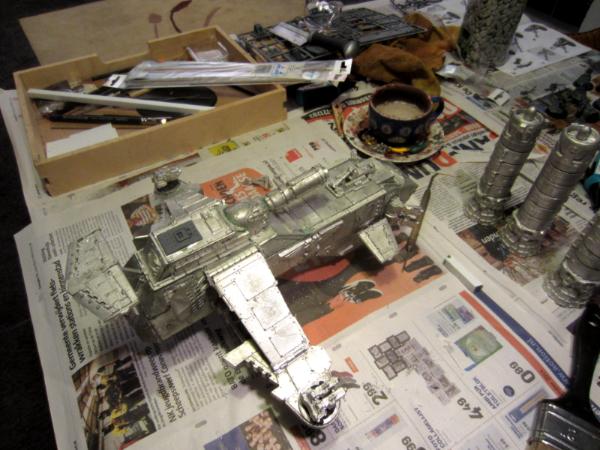 For the upper hull I applied greenstuff liberally after it was in place. I couldn't reach it easily so it won't win no beauty pageants!