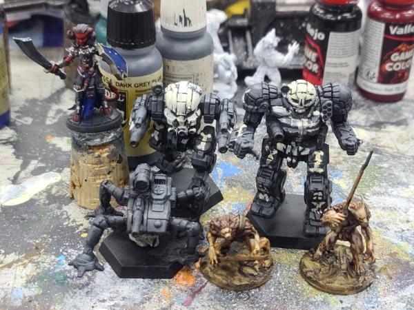 Still not sure what I'm doing to base them. In the mean time, some (off)white on the mechs: