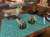 Image Description: Here are the 3 Skorpekh Destroyers from the Command Edition. I messed up one of them, the front and center one. It was hard to figure out the placing of the lower hip/torso piece, so it looks like it has 3 legs facing forward. Oops! |