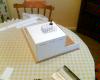 Current stage of assembly with windows and doors cut. The roof stairs are visible and the railings are balanced next to the stairs.