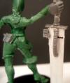 Image Description: Stage 3, arms added, head shaped but not detailed. I went with the anime sized power sword, and that's going to be her helmet in the other hand. |