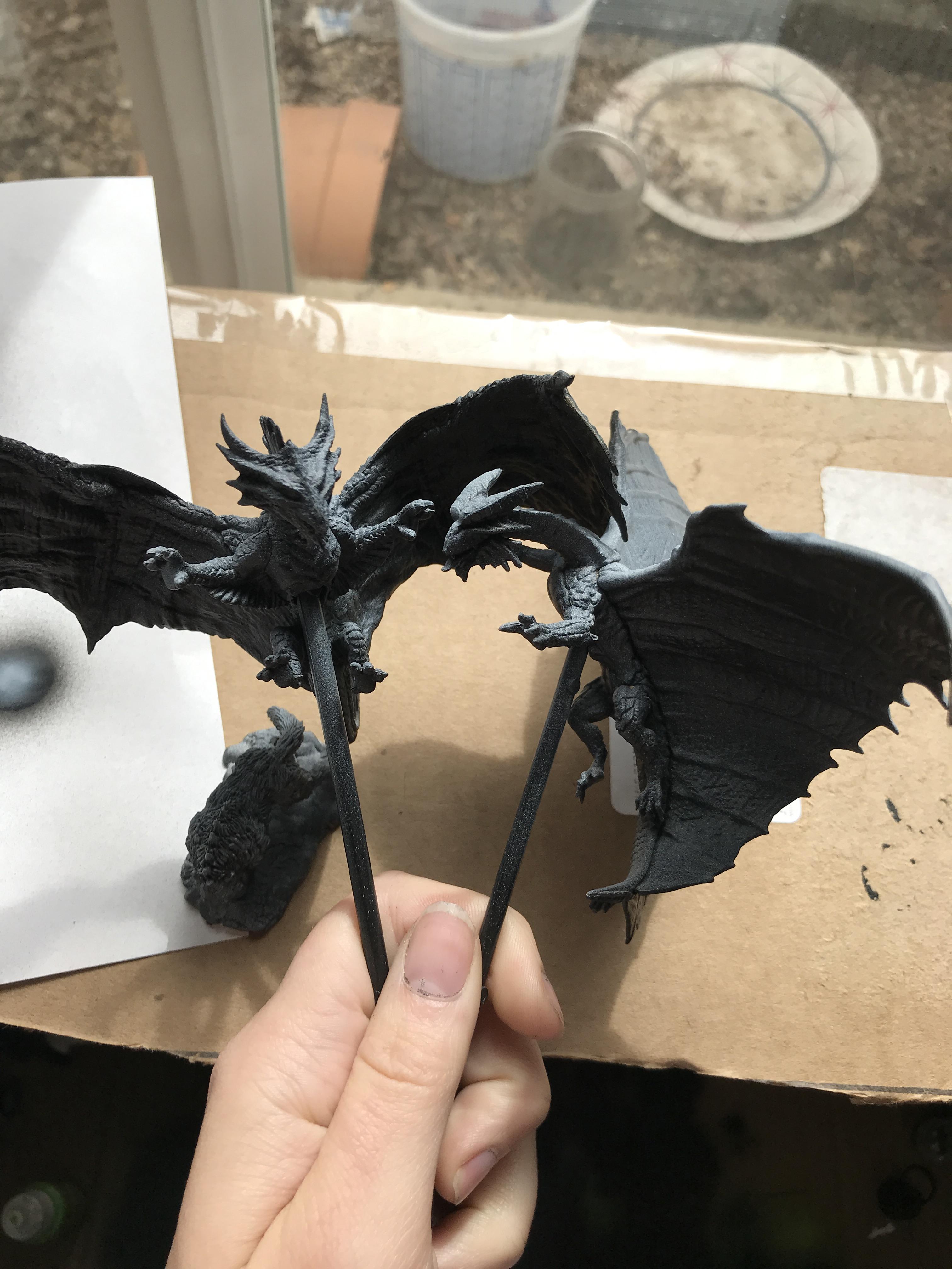 Image Description: Dragons ready for painting, ignore the dead stuff in the window well |