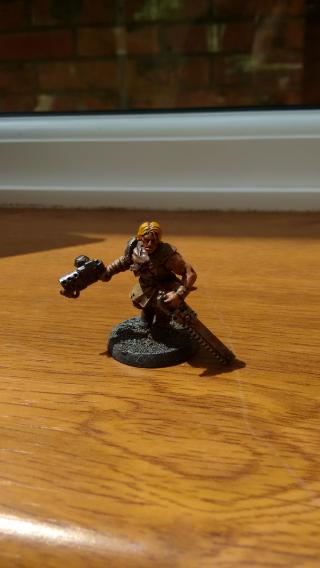 Soren, the gang leader. The arms are the old catachan set, stuck to the DV heavy.