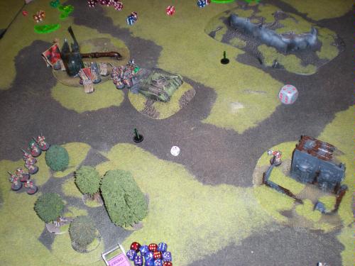 The last Infantry Squad dropped below the ruin in the middle of the table.