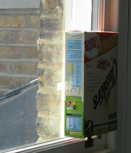 The next job was to stick the box to the window for 3 months at a time, over the course of a whole year. Thanks to my wife who let me do this! The window was south facing so had direct sunlight for the bulk of each day (well as much as you can get in London anyhow).