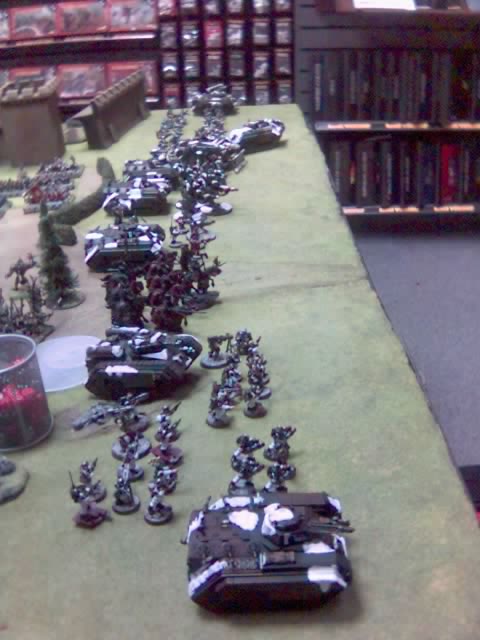 A side long view of the entire mechanised army: The Skitarii 122nd Binary Battalion.