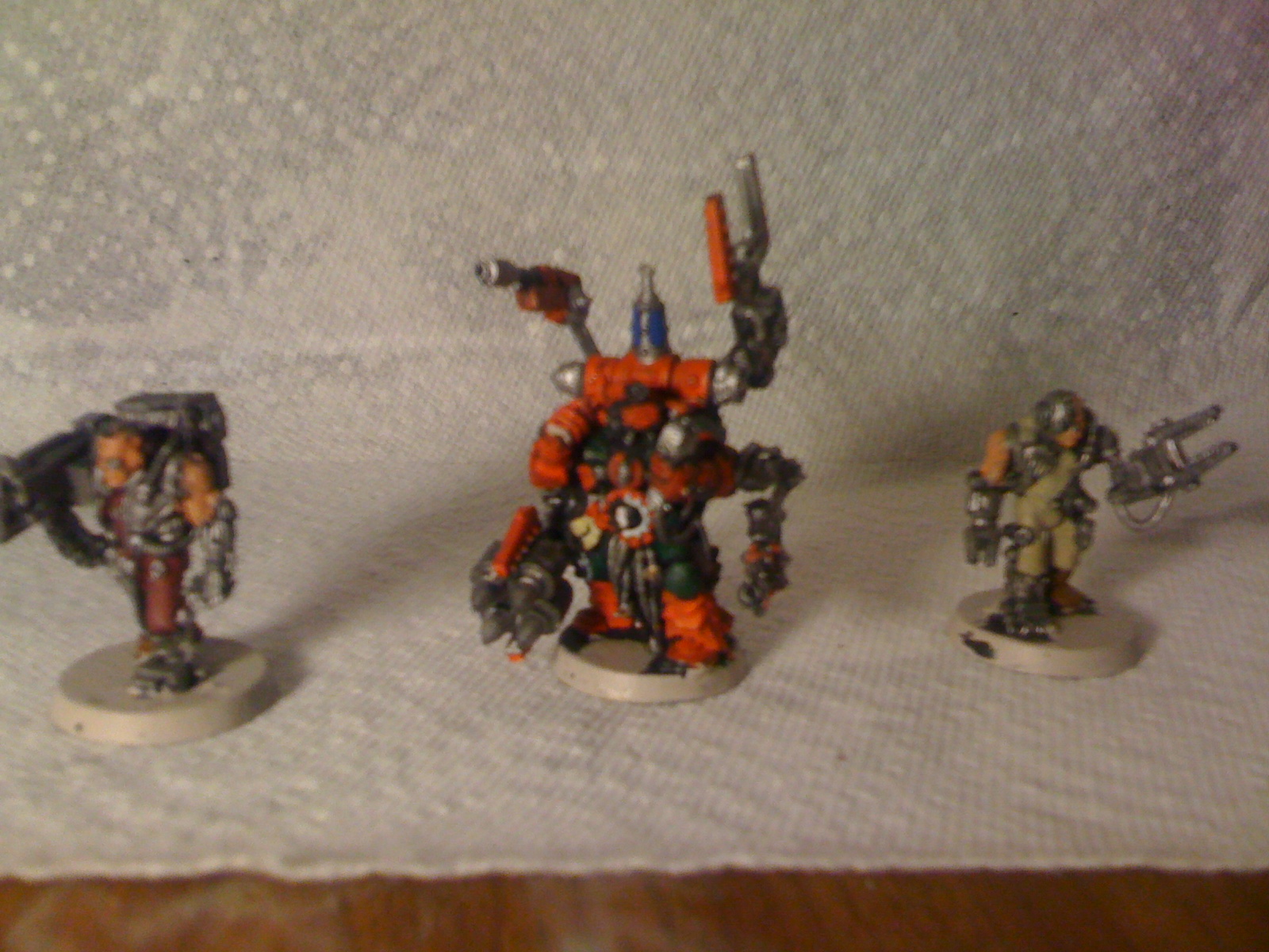 This guy I wanted to do soooo damn bad I bought a set I'd never use ( the thunderfire cannon) just to have the techmarine, He's my favorite model, well one of them, and the servitors were a blast too, I decided after I got another set of tmarine and servitors to use the same scheme of having weapon servs in red and servoservs in tan, looks really good, just not in this pic