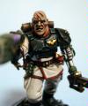 | Ifalna 's Kasrkin sergeant has muted camo on the armor pieces and a face that stands out from the armor.