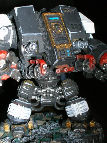 This army started over two years ago as an Ultramarines Army. I played around with a few more paint schemes, and finally decided on Ravenguard. I am currently going throught the army squad by squad applying decals to each model and touching up the paint on areas I've missed. All the bases were done in a city ruins theme with a green and bone tile floor. I still need to build another razorback and finish a couple of other models. My favorite is the dreadnought with the underslung assualt cannons and twin DCCW's. The great thing about this army is that if I want to, I can run them as codex marines, BA, or DA. I would love to continue the force with the new codex, but who knows where that book will lead me :) .